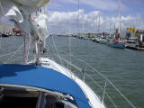 trip across the Solent to Cowes Yacht Haven, still with 30 knots and lumpy seas, conditions