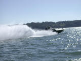 tearing towards us, did a spectacular high-speed turn around our stern and then