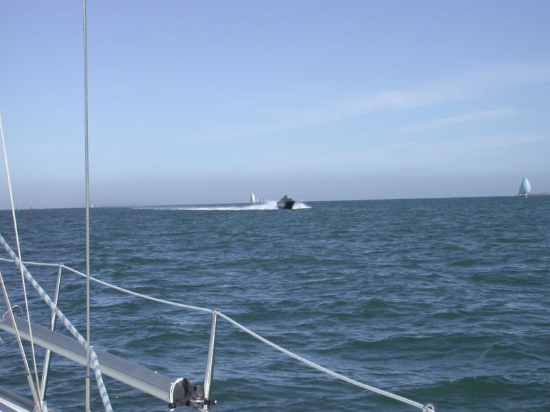 the Swatchway into Portsmouth Harbour and home, a small fast motor vessel came